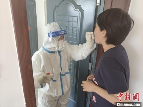 圖為工作人員上門為王璧做核酸檢測(cè)。 二連浩特市公安局供圖