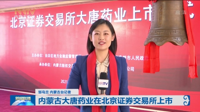 鄒烏蘭內蒙古臺記者:這里是內蒙古股權交易中心,隨著北京證券交易所鳴鐘開市,內蒙古大唐藥業(yè)股份有限公司在北交所開市當天正式上市,這也是內蒙古第一家在北交所上市的企業(yè),標志著內蒙古率先參與北交所改革并實現(xiàn)重要突破。