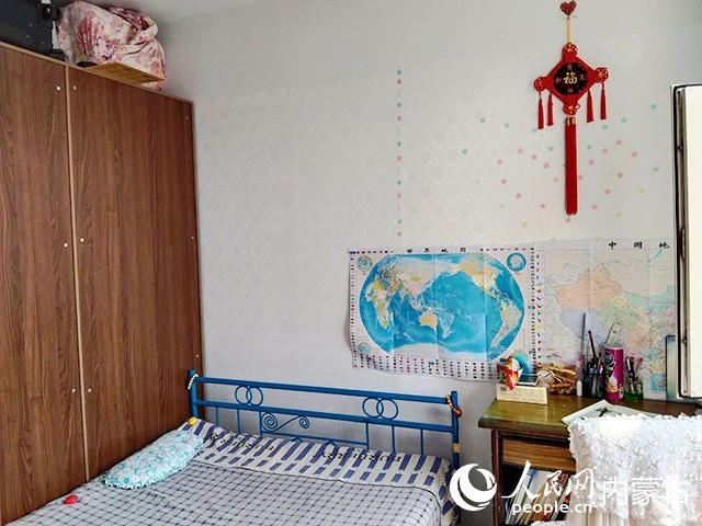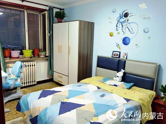 在對原有住房進行規(guī)劃、設(shè)計后,施工隊開始裝修,并配備必要的家具、臥具和學習生活用品。歷時半個多月,一間以藍色為主色調(diào)的小屋建成了?,F(xiàn)在,屬于浩博的那一半臥室,泛黃的臥室墻壁被粉刷成淡藍色,換了新的小床和衣柜,新添置的書桌上擺滿了課外書,看起來整潔又溫馨。