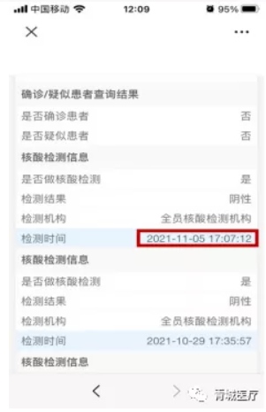 市民7天內(nèi)所做的核酸檢測結(jié)果會在健康碼綠碼下方顯示,7天之后信息會轉(zhuǎn)到綠碼下方的“個人健康風(fēng)險(xiǎn)評估(初步流調(diào))表”中,點(diǎn)擊后可查看最近3次的核酸檢測結(jié)果。核酸檢測結(jié)果具體到日期和具體時點(diǎn)。