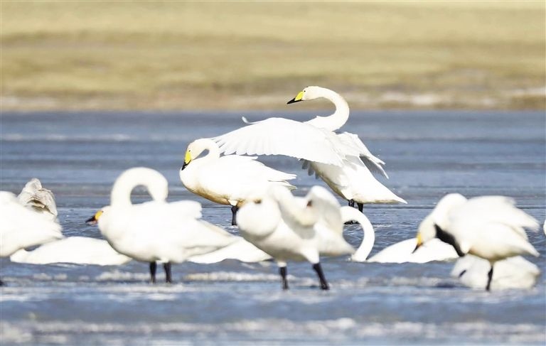 晶晶忍不住感嘆:“我和盈盈每次南飛或北遷,都要在沉湖‘打卡’,這個城市濕地已變成了小天鵝的‘會客廳’。前些年,這里可不好玩,用人類的話說,它‘曾經(jīng)滿目瘡痍,如今萬鳥翔集、水草豐美’。”