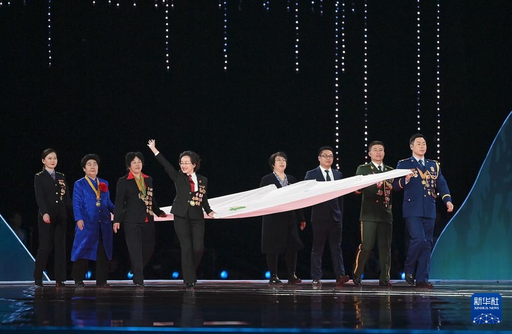 ??2月17日,中華人民共和國(guó)第十四屆冬季運(yùn)動(dòng)會(huì)會(huì)旗在開幕式上入場(chǎng)。新華社記者 黃偉 攝