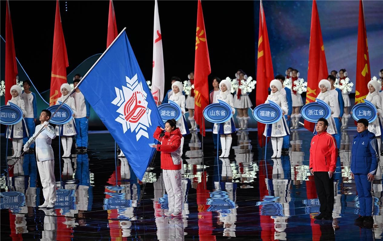 中華人民共和國第十四屆冬季運動會會旗入場。