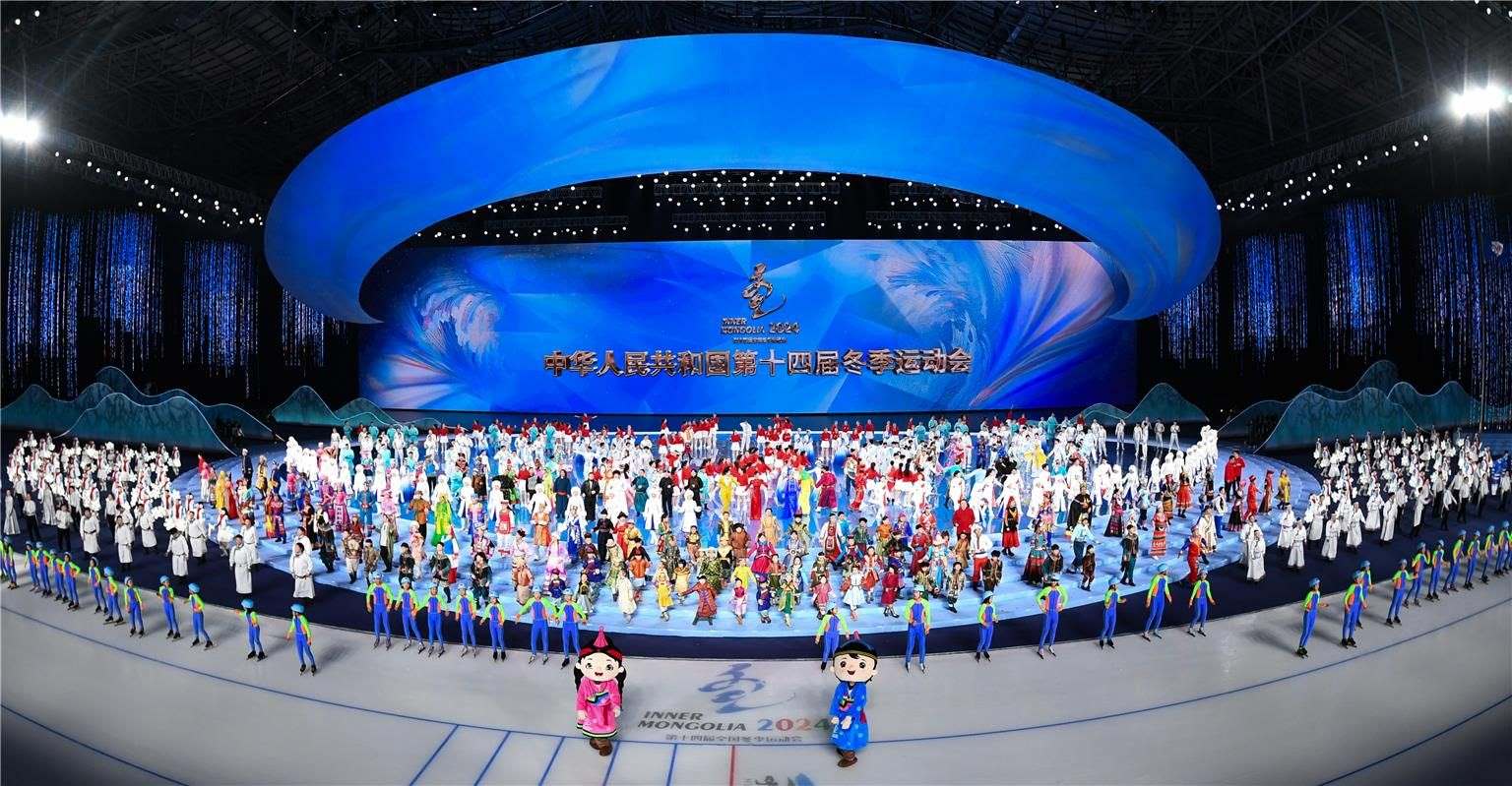 2月17日晚,第十四屆全國冬季運動會開幕式在內(nèi)蒙古自治區(qū)冰上運動訓(xùn)練中心速滑館舉行。開幕式分為開幕儀式、文體展演兩大部分。