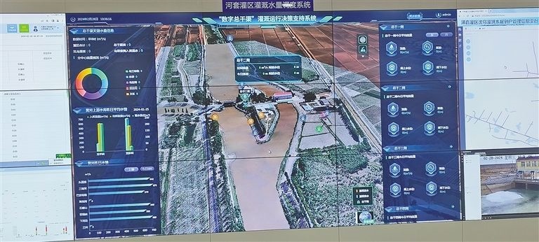 在河套灌區(qū)水量信息化監(jiān)測(cè)中心50米長(zhǎng)的數(shù)字屏幕上,“數(shù)字總干渠”灌溉運(yùn)行決策支持系統(tǒng)只是其中一項(xiàng)內(nèi)容,在這個(gè)數(shù)字屏幕上,還能看到黃河三盛公水利樞紐工程的實(shí)時(shí)畫(huà)面、河套灌區(qū)渠溝道樞紐工程實(shí)時(shí)運(yùn)行現(xiàn)狀、總干渠5座樞紐工程運(yùn)行情況視頻、河套灌區(qū)水量調(diào)度系統(tǒng)、內(nèi)蒙古黃河實(shí)時(shí)視頻監(jiān)控等各種實(shí)時(shí)監(jiān)控畫(huà)面和實(shí)時(shí)數(shù)據(jù),先進(jìn)的科技讓人震撼。