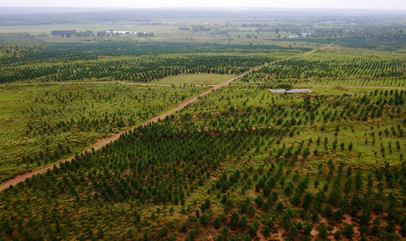 內(nèi)蒙古鄂爾多斯市伊金霍洛旗初具規(guī)模的生態(tài)林場(chǎng)。