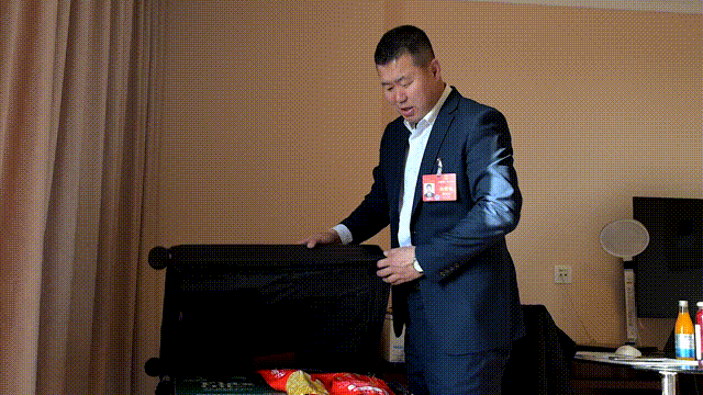 在全國(guó)人大代表、烏蘭察布市卓資縣十八臺(tái)鎮(zhèn)黃旗灘村黨支部書(shū)記、村委會(huì)主任薛志龍的行李箱里,幾只密封包裝的卓資熏雞、兩瓶不同吃法的亞麻籽油、些許袋裝的亞麻籽,占據(jù)了行李箱一多半的空間,這些獨(dú)有的美味也吸引了來(lái)自各地的全國(guó)人大代表的目光。