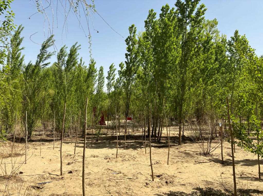 5月的河套平原萬物萌發(fā),充滿生機(jī)與希望。走進(jìn)地處黃河“幾字彎”的內(nèi)蒙古自治區(qū)巴彥淖爾市臨河區(qū)新華林場,沙地里一棵棵堅(jiān)韌挺拔的樹木正迎著春風(fēng),舒枝展葉,茁壯生長。