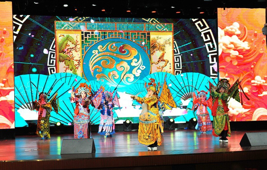 合唱《強國一代有我在》《祖國有我》、古典吉他合奏《天邊》、京劇《梨園薈萃》、朗誦《致敬祖國》、中國舞《碇步橋》、合唱《黨的孩子》《四季的問候》、《民族團結(jié)英雄贊歌》、古箏齊奏《上春山》、拉丁現(xiàn)代舞《紅旗飄飄》、朗誦《你好,未來的我們》、師生舞蹈《外婆橋》、合唱《石榴籽一家親》等13個展演節(jié)目輪番上演。