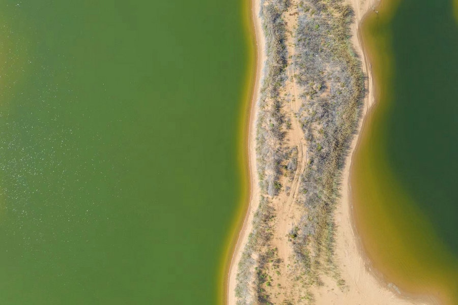 2024年9月25日拍攝的烏海湖(無人機照片)。劉運澤拍攝