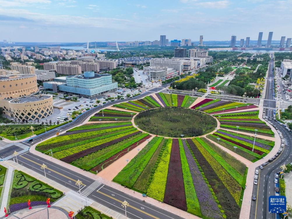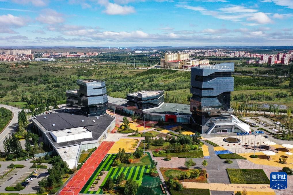 ???這是9月19日拍攝的鄂爾多斯市康巴什區(qū)中軸線(無人機(jī)照片)。