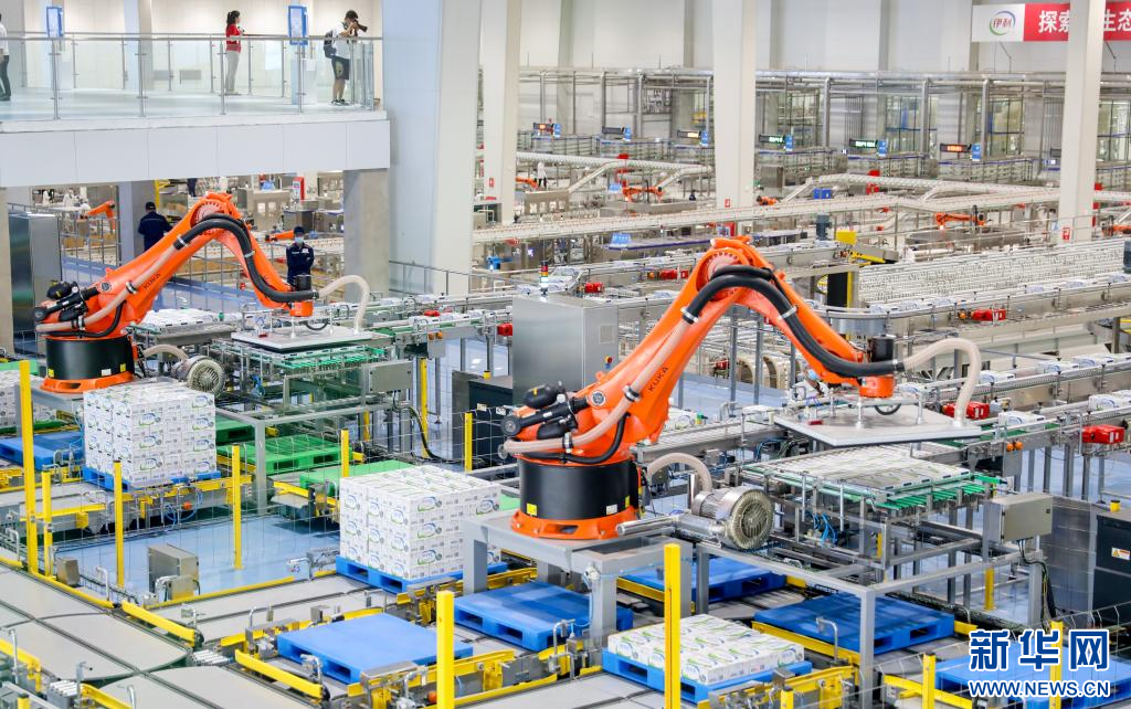 以奶業(yè)為代表的綠色農(nóng)畜產(chǎn)品加工產(chǎn)業(yè)集群正在邁上新臺(tái)階。呼和浩特市有“中國(guó)乳都”之稱,牛奶生產(chǎn)效率之高以秒計(jì)算?!懊棵肷a(chǎn)11包牛奶,每小時(shí)生產(chǎn)4萬(wàn)包牛奶,是全球灌裝速度最快、自動(dòng)化和智能化水平最高的生產(chǎn)線……”在伊利現(xiàn)代智慧健康谷全球智能制造產(chǎn)業(yè)園,講解員關(guān)于伊利牛奶生產(chǎn)線的介紹令游客驚嘆。