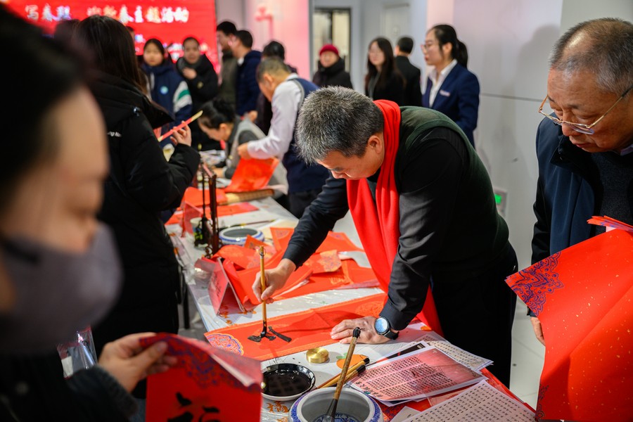 書(shū)法家和市民揮毫潑墨為基層群眾送祝福