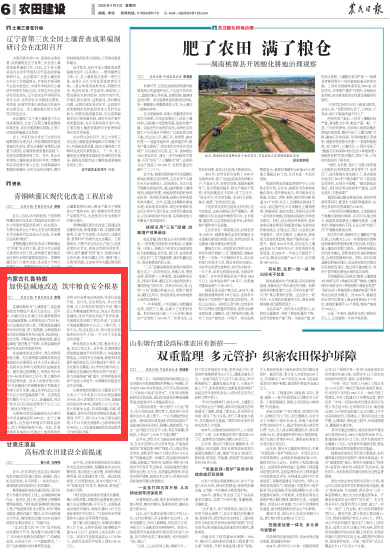 2025年4月3日,《農民日報》第6版刊發(fā)題為《內蒙古扎魯特旗:加快鹽堿地改造 筑牢糧食安全根基》的文章,報道了近年來,內蒙古自治區(qū)通遼市扎魯特旗圍繞“向鹽堿地要糧,讓荒原變良田”的目標,加大鹽堿地治理力度,不斷挖掘鹽堿地開發(fā)利用價值,把工程措施、生物措施和化學改良措施有機結合起來,因地制宜、綜合治理,不斷拓展農業(yè)耕地資源,激活鹽堿地“潛在糧倉”資源,實現(xiàn)鹽堿地資源的系統(tǒng)改良和高效利用。