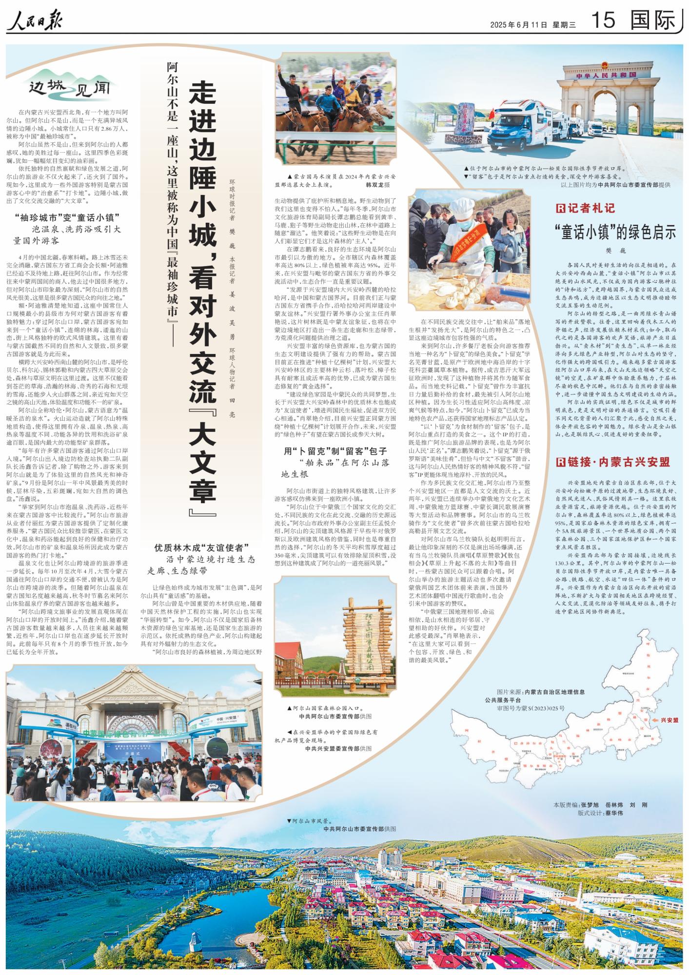 2025年6月11日,《人民日報(bào)》第15版刊發(fā)整版文章《阿爾山不是一座山,這里被稱為中國“最袖珍城市”——走進(jìn)邊陲小城,看對外交流“大文章”》,報(bào)道了依托獨(dú)特的自然稟賦和綠色發(fā)展之道,阿爾山的旅游業(yè)火起來了。現(xiàn)如今,這里成為一些外國游客特別是蒙古國游客心中的“治愈系”“打卡地”。邊陲小城,做出了文化交流交融的“大文章”。