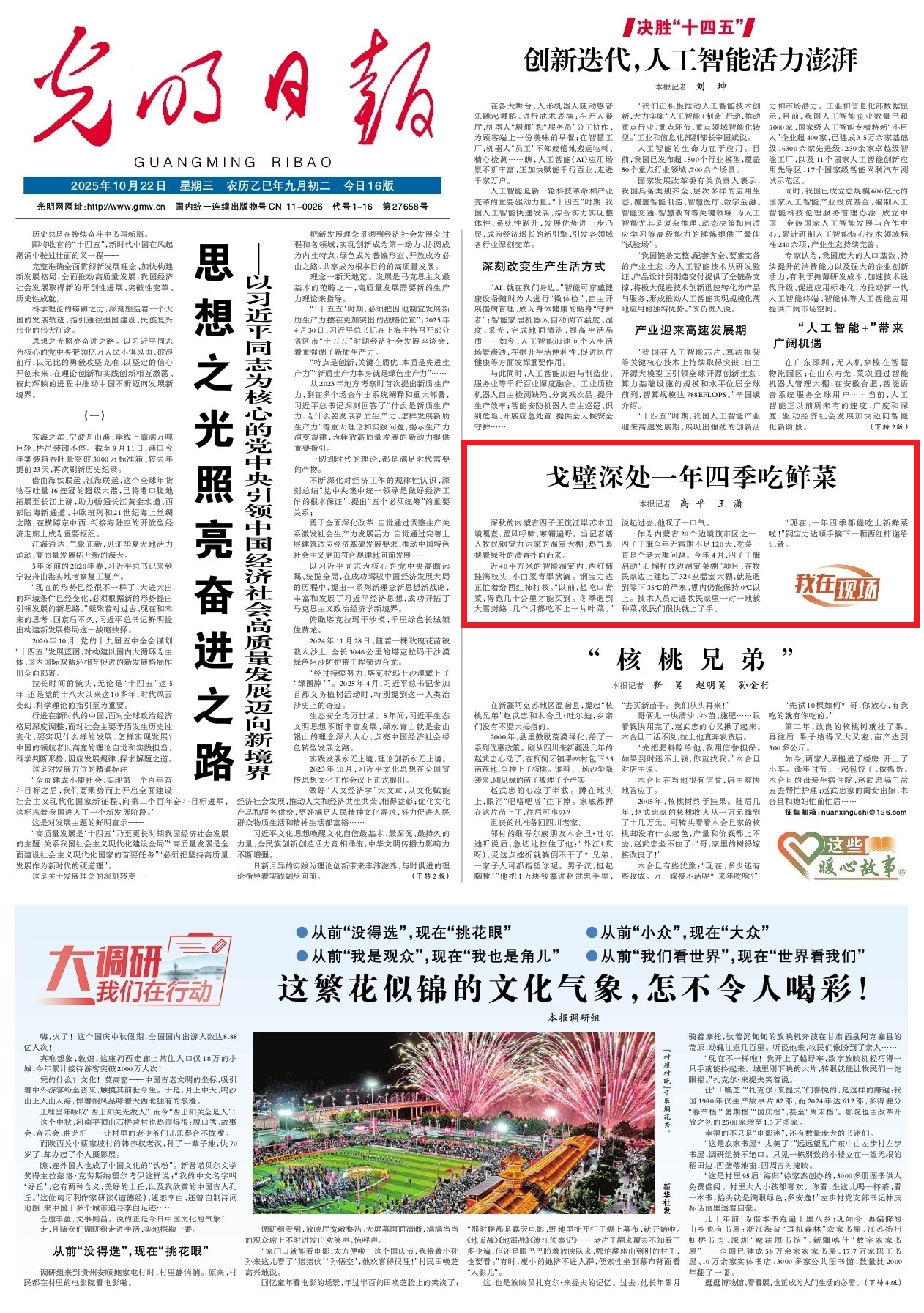 2025年10月22日《光明日?qǐng)?bào)》第1版