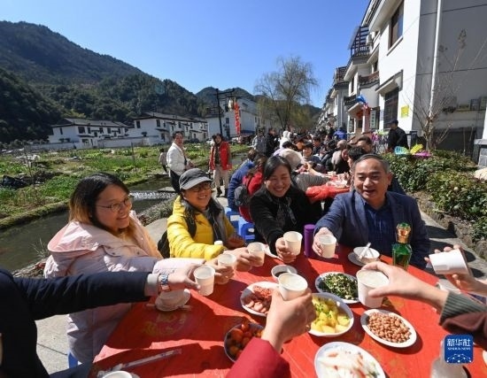 當日,上千名游客來到浙江省建德市蓮花鎮(zhèn)戴家新村民宿一條街,參加鄉(xiāng)村特色百家宴,感受新農(nóng)村“舌尖上的幸?!?。本次鄉(xiāng)村百家宴也標志著2023建德市蓮花鎮(zhèn)鄉(xiāng)村民俗旅游文化節(jié)正式開啟。