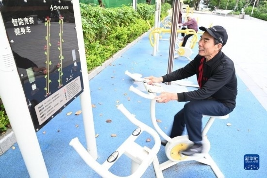 4月24日,市民在福州市鼓樓區(qū)西河智慧體育公園使用智能競(jìng)賽健身車(chē)。