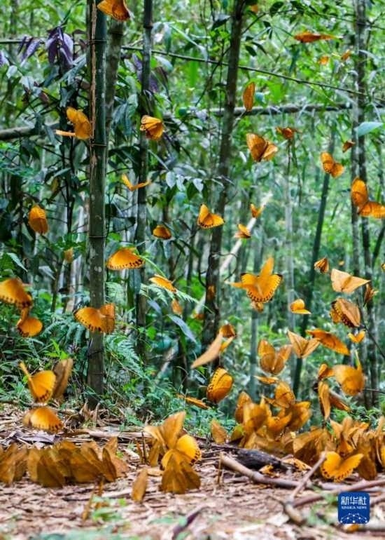 近日,大量箭環(huán)蝶蛹在云南省紅河州金平苗族瑤族傣族自治縣馬鞍底鄉(xiāng)的中國·紅河蝴蝶谷集中羽化成蝶,形成了一年一度的蝴蝶大爆發(fā)奇觀。