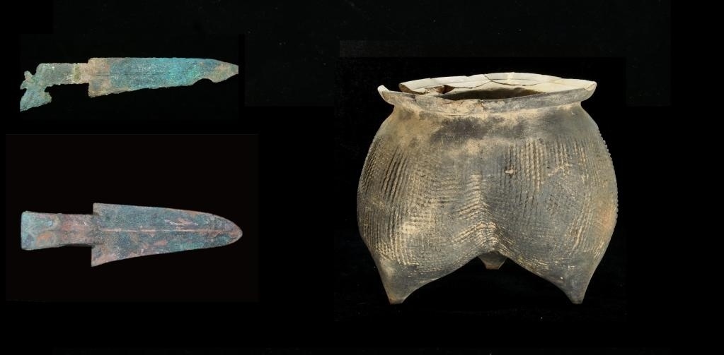 圖為趙窯遺址出土的銅戈與陶鬲。(受訪者供圖)