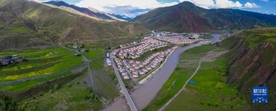6月22日在國道317線昌都段拍攝的丁青縣的村莊(無人機(jī)照片)。