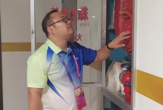 王偉亮駐點(diǎn)在杭州黃龍?bào)w育中心體育場,根據(jù)足球賽開賽時(shí)間的特點(diǎn),他一般是下午17:30以前到崗,先是對(duì)黃龍?bào)w育中心體育場開展賽前風(fēng)險(xiǎn)查勘,沿著場館外圍觀眾通行通道對(duì)消防設(shè)施、排水設(shè)施、通風(fēng)設(shè)施、觀眾席出入口、無障礙通行設(shè)施以及懸空固定設(shè)施逐一進(jìn)行檢查,進(jìn)行風(fēng)險(xiǎn)排除。在賽中和賽后,他也要持續(xù)巡場,對(duì)因觀眾進(jìn)場導(dǎo)致發(fā)生的新的風(fēng)險(xiǎn)情況予以反饋和處置,真正結(jié)束工作已經(jīng)要到凌晨0:30左右。如今亞運(yùn)已經(jīng)開幕,多場比賽均達(dá)到場館的最大負(fù)荷,王偉亮長期處于精神高度集中、體力臨近上限的狀態(tài)。但是他沒有絲毫松懈,遇到突發(fā)情況時(shí),依舊會(huì)第一個(gè)沖上去提供幫助。