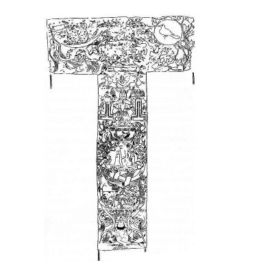 解讀出漢墓帛畫中殘月所蘊含的時間密碼,再看整幅T形帛畫。我們看到馬王堆漢墓帛畫形制上最重要的特征,就是非常特殊的T字形狀。中央由三張絹布整幅拼成,中軸描繪了天、承載墓主人魂魄的魂車和地下世界三部分。這樣的三段模式在漢畫像石中并不少見。一如曾部川寬指出的那樣,真正造成這個T字形特殊形狀的,是在中軸的左右增加了描繪太陽和描繪月亮的部分。我想之所以特地增加出日月這兩部分,一定是因為有特別的需要。那么,這需要是什么呢?當我們解讀清楚在帛畫上段左側(cè)描繪的月世界的殘月所蘊含的特殊時間密碼,再去看右側(cè)對稱處特地畫出九個太陽組成的畫面,我們自然會想到《山海經(jīng)》中扶桑木與十日的神話故事,與蟾蜍、玉兔、殘月等圖像展示的主題一樣,這應(yīng)該同樣是一個與時間循環(huán)密切相關(guān)的故事主題。日與月在這里并不單純是代表性的天文標志物。他們展示的都是時間的循環(huán),和在時間循環(huán)中死而復(fù)生的主題。本文就此止筆于月相的分析。有關(guān)太陽的循環(huán),以后再展開討論。