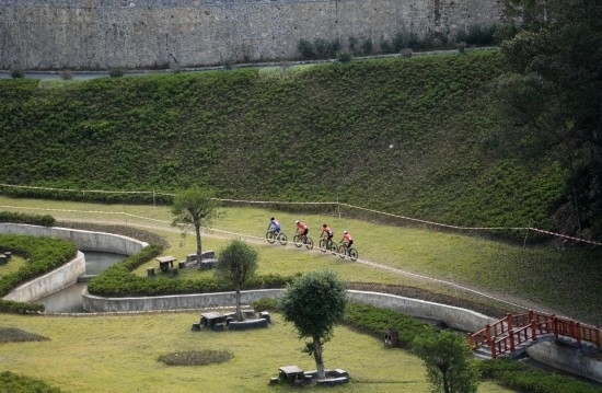 10月28日,參賽選手在比賽中。當(dāng)日,第一屆全國(guó)學(xué)生(青年)運(yùn)動(dòng)會(huì)男子山地自行車越野賽在廣西南丹縣舉行,貴陽市代表隊(duì)選手王勝以1小時(shí)4分36秒奪得冠軍,遵義市代表隊(duì)選手文靈浩以1小時(shí)4分38秒獲得亞軍,成都市代表隊(duì)選手解道超以1小時(shí)5分12秒獲得季軍。新華社記者 陸波岸 攝