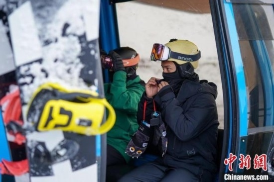 滑雪運(yùn)動員乘坐纜車上山滑雪 趙宇航 攝