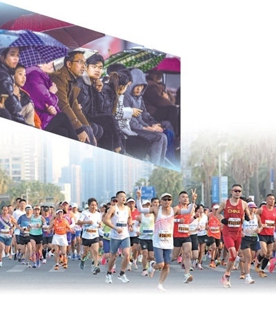 上圖:1月6日,2024年“村超”新賽季在貴州省榕江縣開賽。圖為觀眾在場(chǎng)邊觀賽。新華社記者 陶 亮攝 下圖:1月7日,2024廈門馬拉松賽舉行,3萬名選手參加。圖為選手在比賽中。陳 博攝(影像中國)