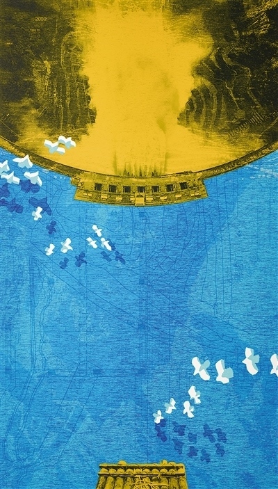 新時代長江氣象萬千。在重慶市文化和旅游發(fā)展委員會、重慶市文學藝術界聯(lián)合會等單位主辦的“2022同源·同向——長江流域十三省市自治區(qū)美術作品邀請展”上,龐茂琨油畫《輝耀九龍》、徐君華粉畫《浦江之夢》等作品,以充滿詩意的語言展現(xiàn)了日新月異的城鄉(xiāng)面貌與豐富多彩的現(xiàn)實生活。近年來,一批重大工程的實施,為百姓生活帶來便利,使長江流域涌動活力。一些美術工作者充分發(fā)揮視覺藝術的力量感,反映長江流域建設成就。比如,賀思恩版畫《蓄勢——破譯雅礱密碼》依托絲網(wǎng)版畫色彩表現(xiàn)力較強的藝術特色,以俯瞰視角,展現(xiàn)了長江流域水電站的時代風采。