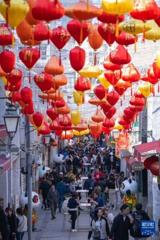 2月12日,旅客在澳門(mén)福隆新街游覽。
