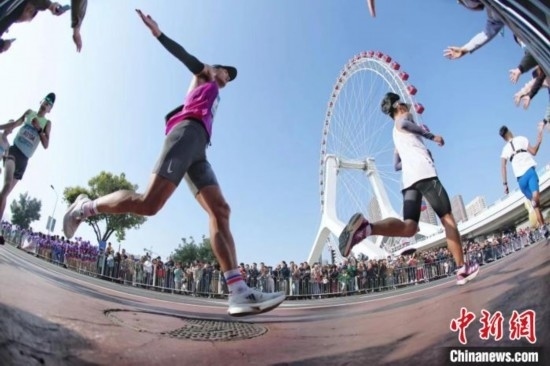 2023年10月,天津馬拉松時(shí)隔17年后重返市區(qū)進(jìn)行比賽,共吸引了29個(gè)國(guó)家和地區(qū)約9.5萬人參與報(bào)名。途經(jīng)7個(gè)行政區(qū)的線路串聯(lián)起天津五大道、民園廣場(chǎng)、世紀(jì)鐘、天津之眼等諸多天津城市地標(biāo)型建筑和知名景點(diǎn),“驚艷”著來自世界各地的參賽選手。