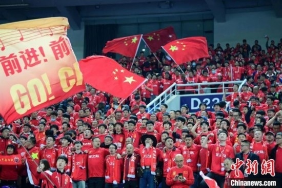 3月26日晚,在天津舉行的2026年國(guó)際足聯(lián)世界杯亞洲區(qū)預(yù)選賽36強(qiáng)賽C組比賽中,中國(guó)隊(duì)主場(chǎng)4比1戰(zhàn)勝新加坡隊(duì)。圖為球迷為中國(guó)隊(duì)加油助威。佟郁 攝