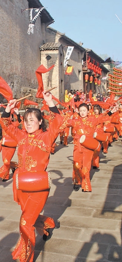 上莊村村民在表演山西省非物質文化遺產“中莊秧歌”。張家慶攝(人民視覺)