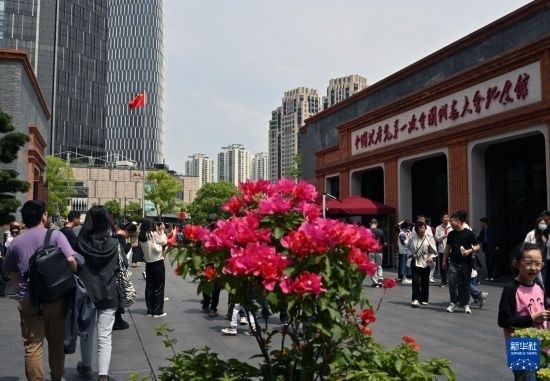 5月3日,游客在中共一大紀(jì)念館前參觀。