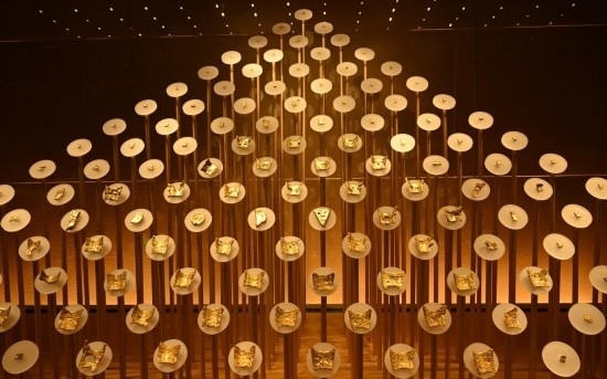 《管子·輕重甲》載:“楚有汝、漢之黃金”。楚地盛產(chǎn)黃金,貨幣制度發(fā)達(dá)。158枚楚金幣布成的“金山”如同暗夜繁星,吸引了眾多游客的目光。楚金幣是博物館特色藏品之一,有龜版形、楔形和圓形,并印有“郢爰”“陳爰”等印記。