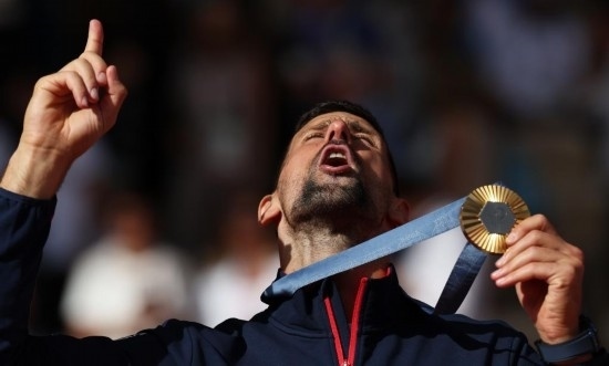 8月4日,焦科維奇在頒獎(jiǎng)儀式上慶祝。當(dāng)日,巴黎奧運(yùn)會網(wǎng)球項(xiàng)目男單決賽在羅蘭·加洛斯體育場舉行,塞爾維亞選手焦科維奇2比0戰(zhàn)勝西班牙選手阿爾卡拉斯,獲得冠軍。 新華社記者 高靜 攝