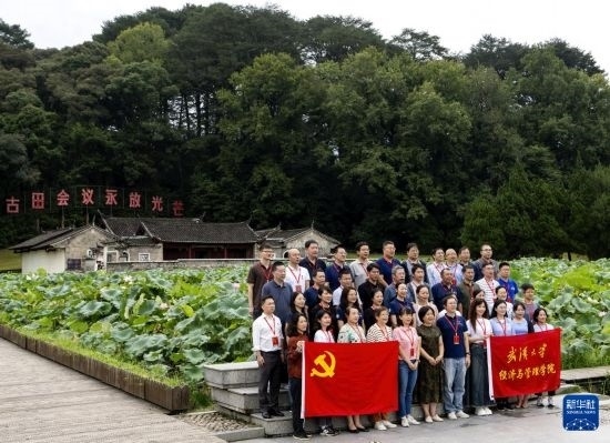8月29日,來自武漢大學(xué)經(jīng)濟(jì)與管理學(xué)院的培訓(xùn)團(tuán)隊在古田會議會址前合影。
