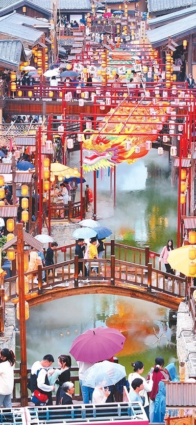 龍門浩老街上,幾名外地游客沿著青石臺(tái)階漫步至老街最高點(diǎn)——攬?jiān)屡_(tái),遠(yuǎn)眺渝中半島。這條位于重慶市南岸區(qū)南濱路中段的老街,面朝長江,背依南山,開埠文化、巴渝文化等文化底蘊(yùn)深厚。近年來,經(jīng)過保護(hù)與修繕,這里不僅恢復(fù)了歷史風(fēng)貌,還增添了現(xiàn)代時(shí)尚氣息。古色古香的街道兩旁,新潮的商鋪、餐館和咖啡館為市民游客休閑購物提供便利和全新體驗(yàn)。“感受時(shí)光交錯(cuò)的美妙”,成為這里的一大魅力。數(shù)據(jù)顯示,自發(fā)展全域旅游以來,龍門浩老街所在的龍門浩街道已接待游客近4000萬人次,實(shí)現(xiàn)旅游收入276.8億元,龍門浩老街還成功創(chuàng)建第二批國家級(jí)夜間文旅消費(fèi)聚集區(qū)。