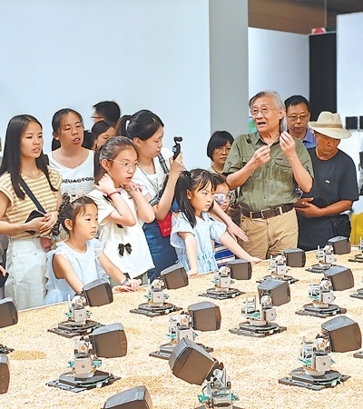 “第十四屆全國美術(shù)作品展覽實(shí)驗(yàn)藝術(shù)、數(shù)字藝術(shù)與動畫作品展”專家導(dǎo)賞現(xiàn)場。中國美術(shù)家協(xié)會供圖