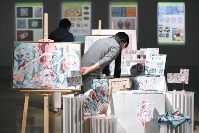 2023年12月16日,觀眾在中華世紀(jì)壇舉辦的圓明印象·皇家“游”禮文創(chuàng)設(shè)計(jì)展欣賞文創(chuàng)作品。新華社記者 羅曉光攝