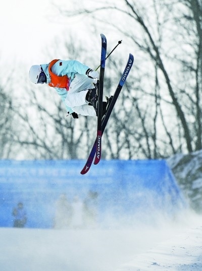 2月8日,李方慧在自由式滑雪女子U型場(chǎng)地技巧決賽比賽中。新華社記者 夏一方攝