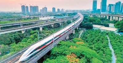 復(fù)興號列車駛出廣州南站。