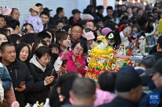 當(dāng)日是農(nóng)歷二月十九,每年農(nóng)歷這一天,呂梁山區(qū)的山西省嵐縣嵐城鎮(zhèn)的鄉(xiāng)親們都會(huì)將精心制作的面塑擺上街頭進(jìn)行展示,形成一條百米長(zhǎng)的“面塑長(zhǎng)河”。這些面塑作品造型各異、精巧絕倫,寄托了人們對(duì)美好生活的期盼。