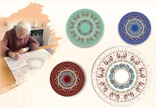 圖為常沙娜和她設(shè)計(jì)的紋樣。