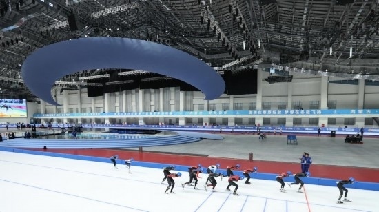 內(nèi)蒙古冰上運(yùn)動(dòng)訓(xùn)練中心是組團(tuán)式場(chǎng)館群,包括速滑館、短道速滑館、冰球冰壺館等,作為“十四冬”的主場(chǎng)館,這里承擔(dān)著開幕式和全部冰上項(xiàng)目比賽任務(wù)。