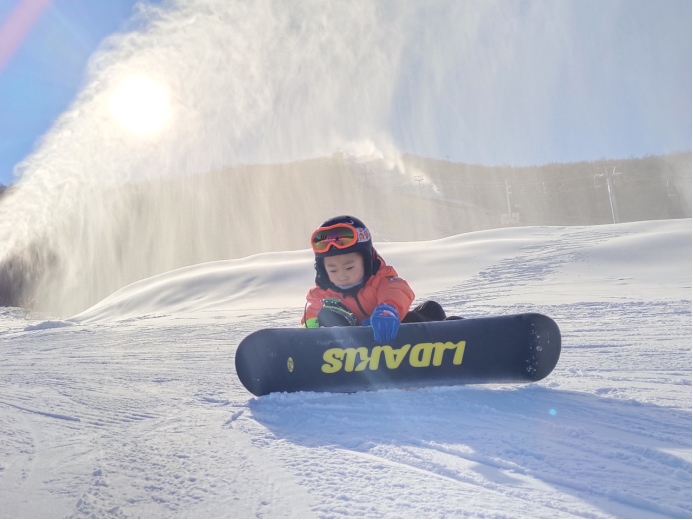 ??正在體驗滑雪的小朋友 蔣希武 攝