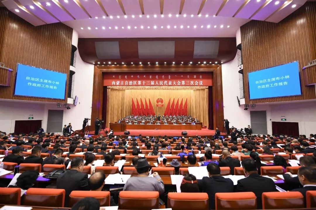 1月12日上午,內蒙古自治區(qū)第十三屆人民代表大會第三次會議在內蒙古人民會堂開幕。內蒙古自治區(qū)主席布小林作政府工作報告。