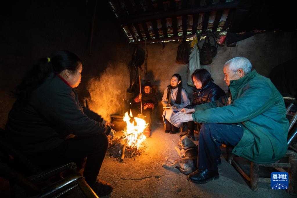 在湖南省常德市鼎城區(qū)草坪鎮(zhèn)楓林口村,全國人大代表杜美霜(右三)入戶與當(dāng)?shù)卮迕窠涣?2月16日攝)。新華社記者 陳思汗 攝